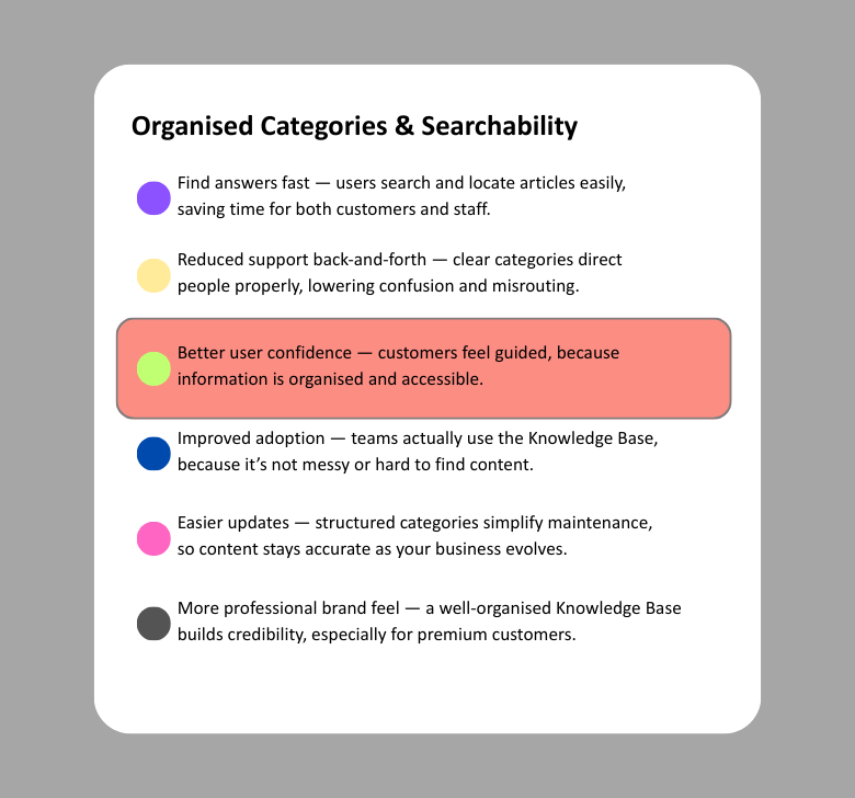 Create a self-service library for customers and staff—so answers are easy to find, support load drops, and your business looks more professional.